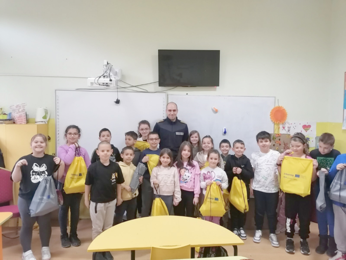 - Разработване и разпространение на рекламни артикули за децата от трансграничния регион в България по време на обучението им в клас;