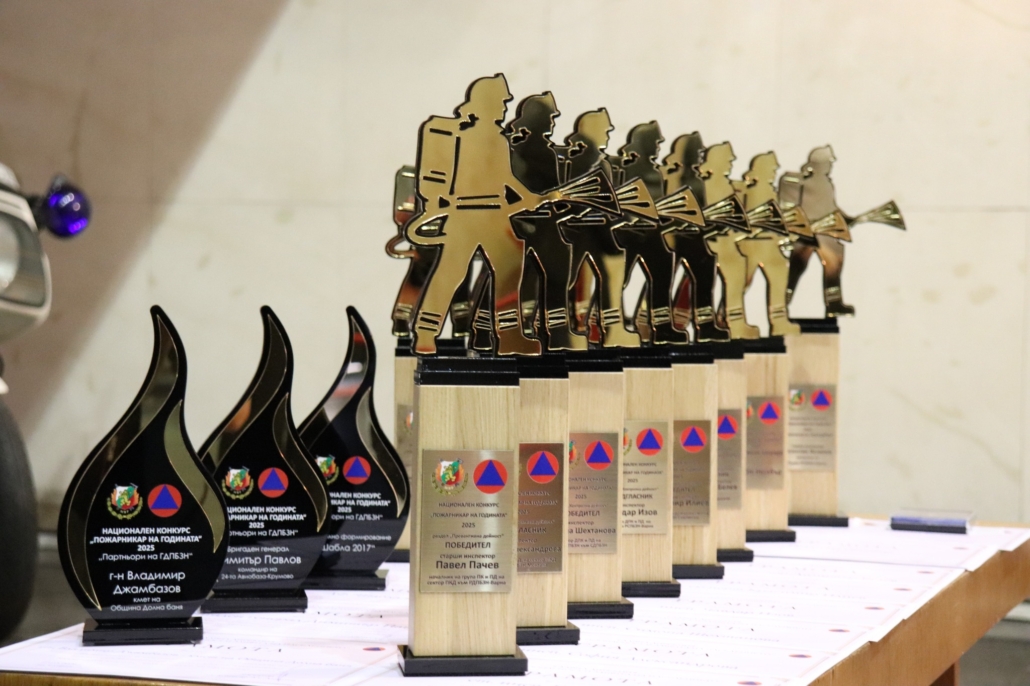 Наградените служители в конкурса „Пожарникар на годината“ получиха статуетка и грамота, а комплексният победител и почетен знак на МВР II степен.
