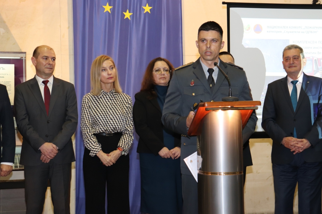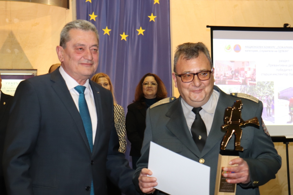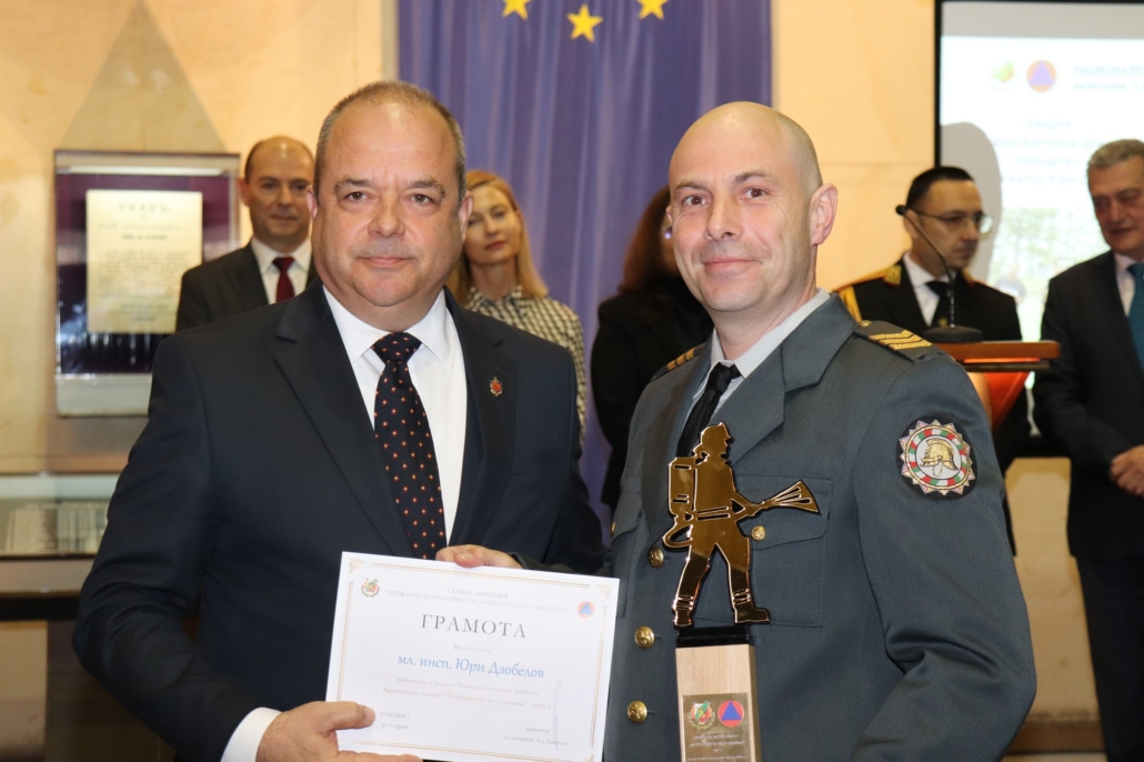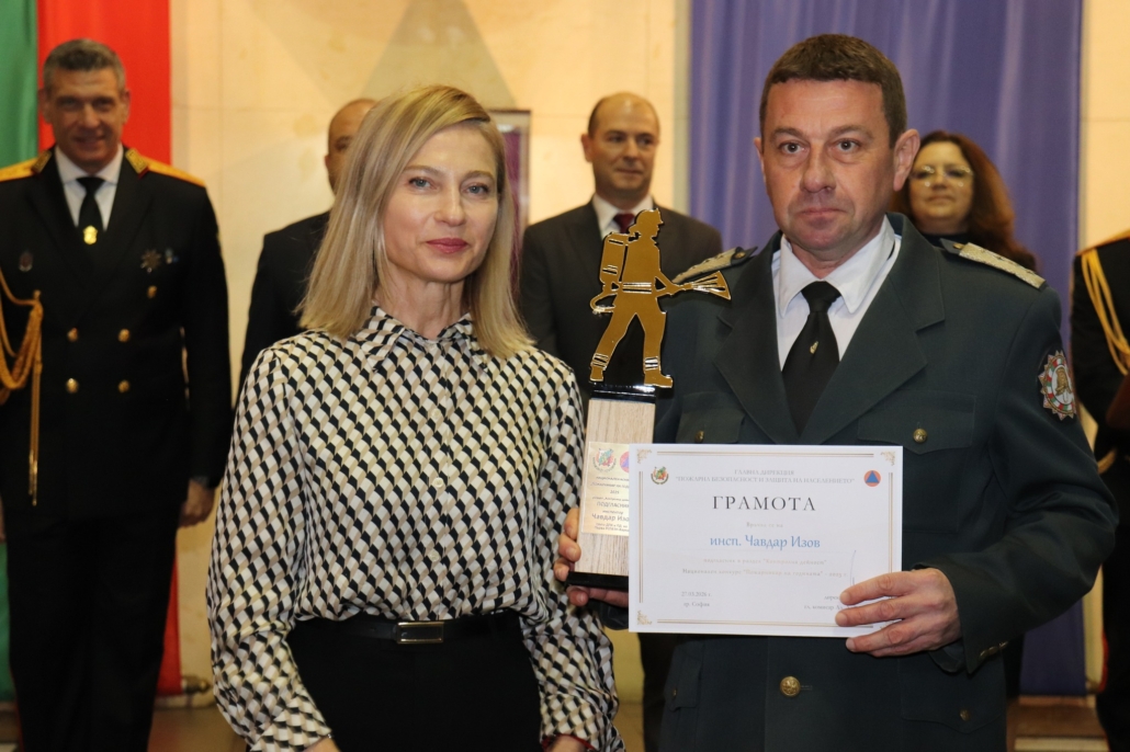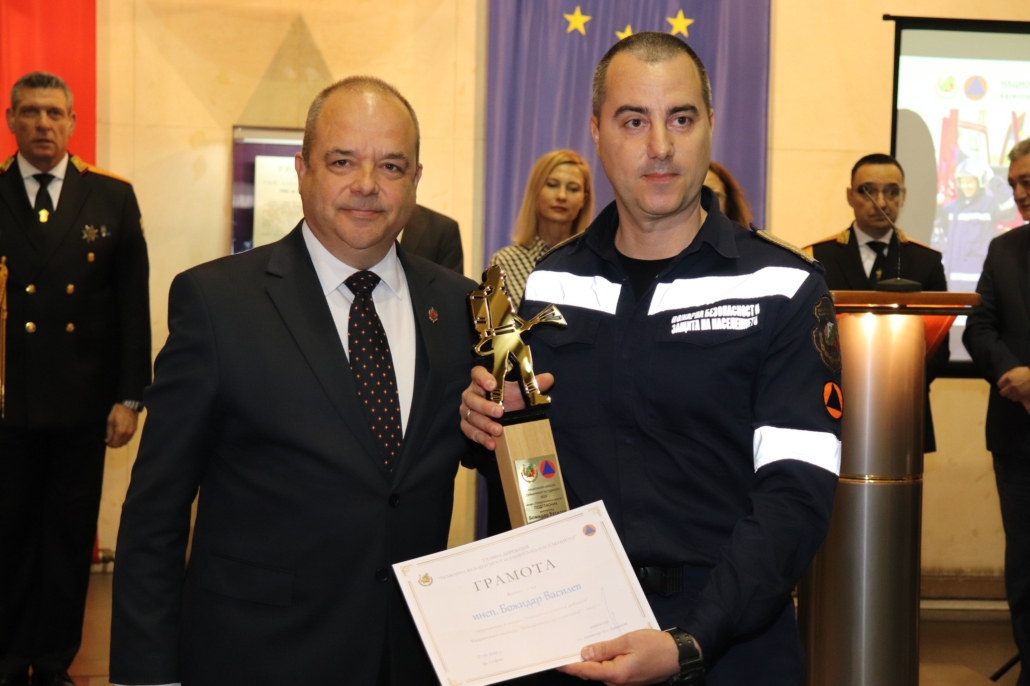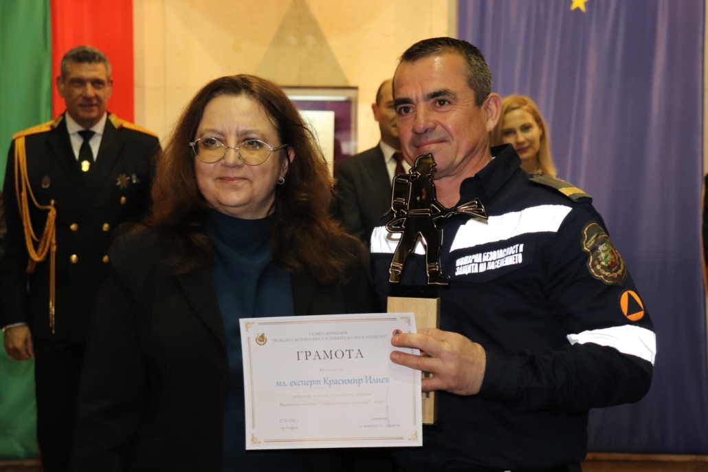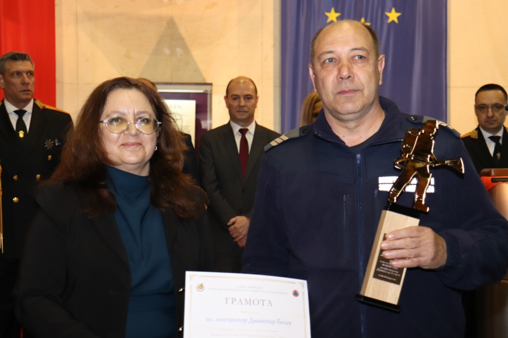 Награда за принос в развитието на пожарната безопасност и защита на населението в България получи младши експерт Георги Костадинов – началник на дежурна смяна в Участък-Кремиковци на Осма Районна служба в София.